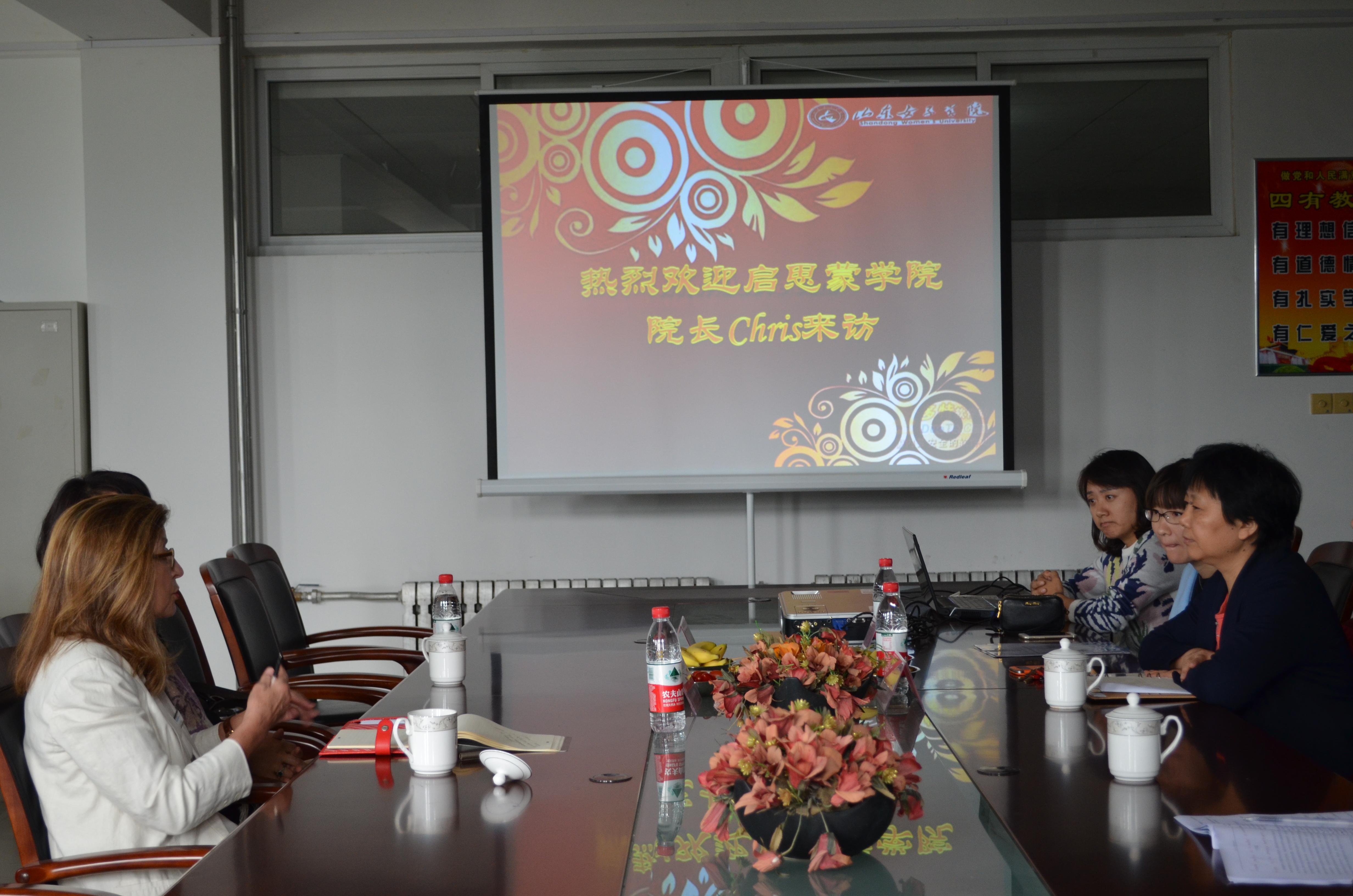 上午,Chris副院长一行与会计学院院长、党总支书记、副院长、副书记、教研室主任等在1号教学楼427会议室进行了座谈。双方愉快的回顾了自合作以来在学生联合培养、师资培训等方面所取得的成就,并针对专科合作项目的推进、本科合作项目的开展、短期学习培训等内容深入交换了意见,并达成了共识。