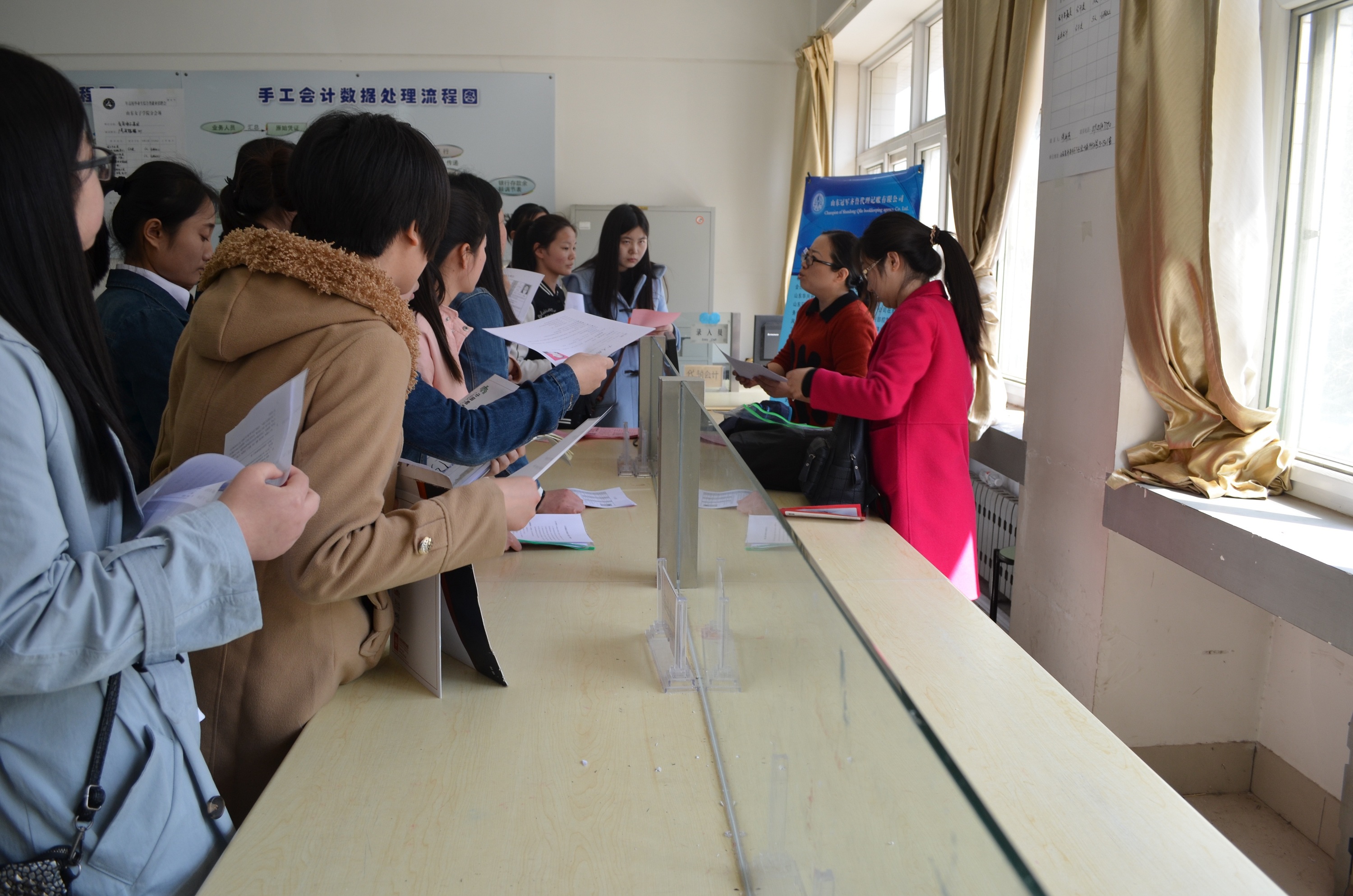 招聘会吸引了省内外的20余家单位到场参加,包括山东健诚会计师事务所、济南中盛代理记账财务咨询有限公司、北京京北方信息技术有限公司、海尔集团等单位,其中大部分单位是学院的实习就业双基地。此次招聘会为毕业生提供就业岗位200余个。当天,学院有近300名毕业生前来寻找就业机会,由于此次招聘会提供的岗位与学生所学专业对口、相关度大,因此有100余名学生当场达成了就业意向。