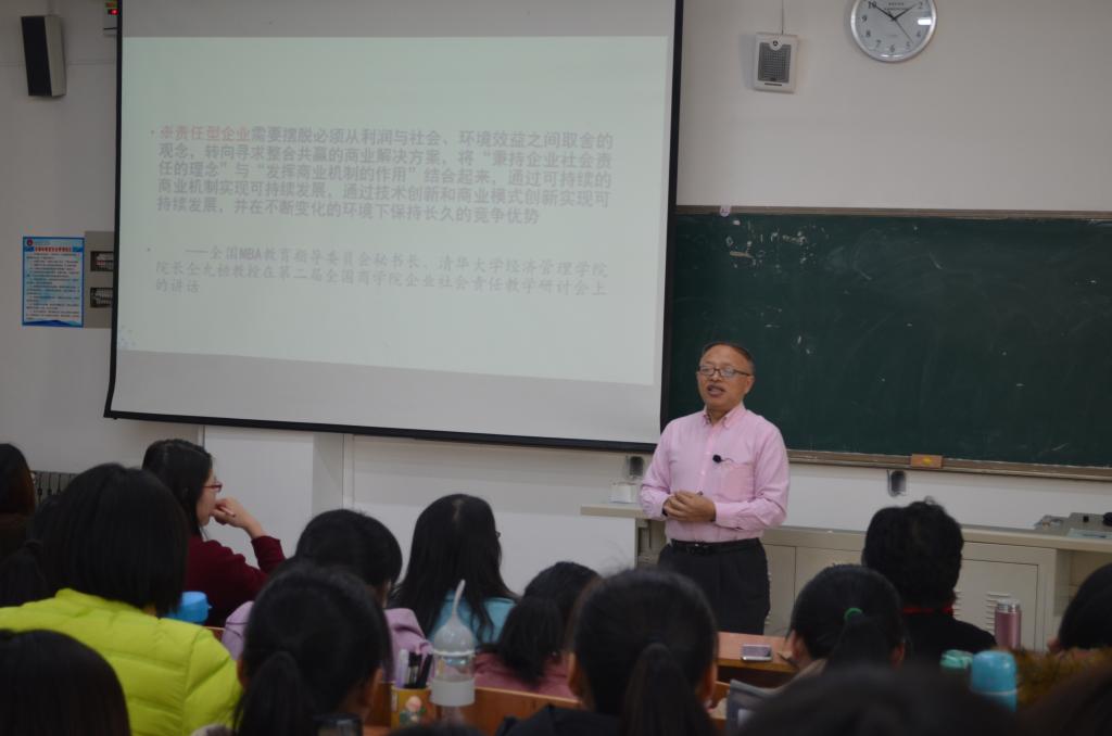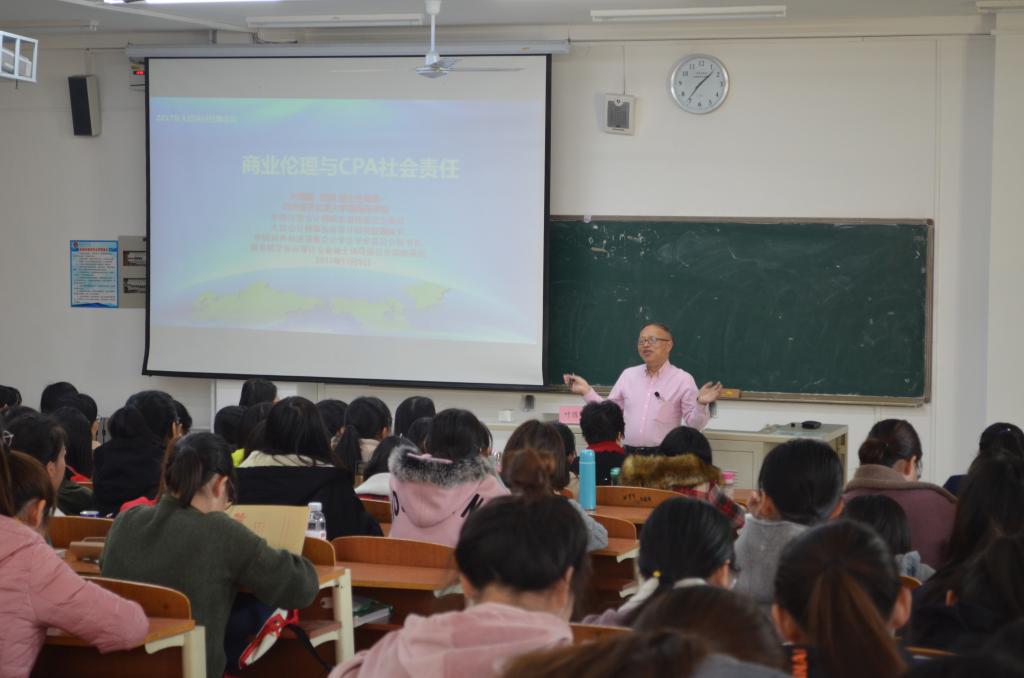 11月14日下午,对外经贸大学叶陈刚教授在我校博文楼210教室做了题为“商业伦理与CPA社会责任”的学术前沿报告。报告会由会计学院院长冯华教授主持,学院部分师生听取了报告。