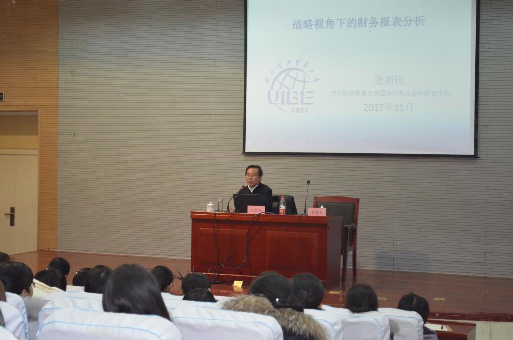 12月1日,对外经济贸易大学副校长、博士生导师张新民教授在图书馆一楼报告厅为会计学院师生做了一场题为“战略视角下的财务报表分析”的学术报告。报告由学校副校长刘正林教授主持。