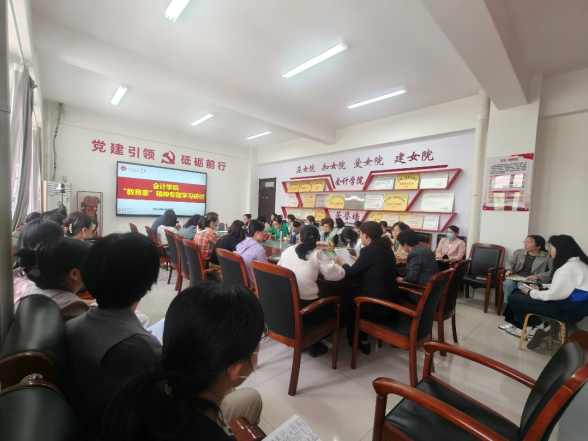 为深入弘扬新时代教育家精神,涵养高尚师德师风,会计学院于4月17日在博雅楼A301会议室召开弘扬践行教育家精神专题学习研讨会,全体教职工参加。