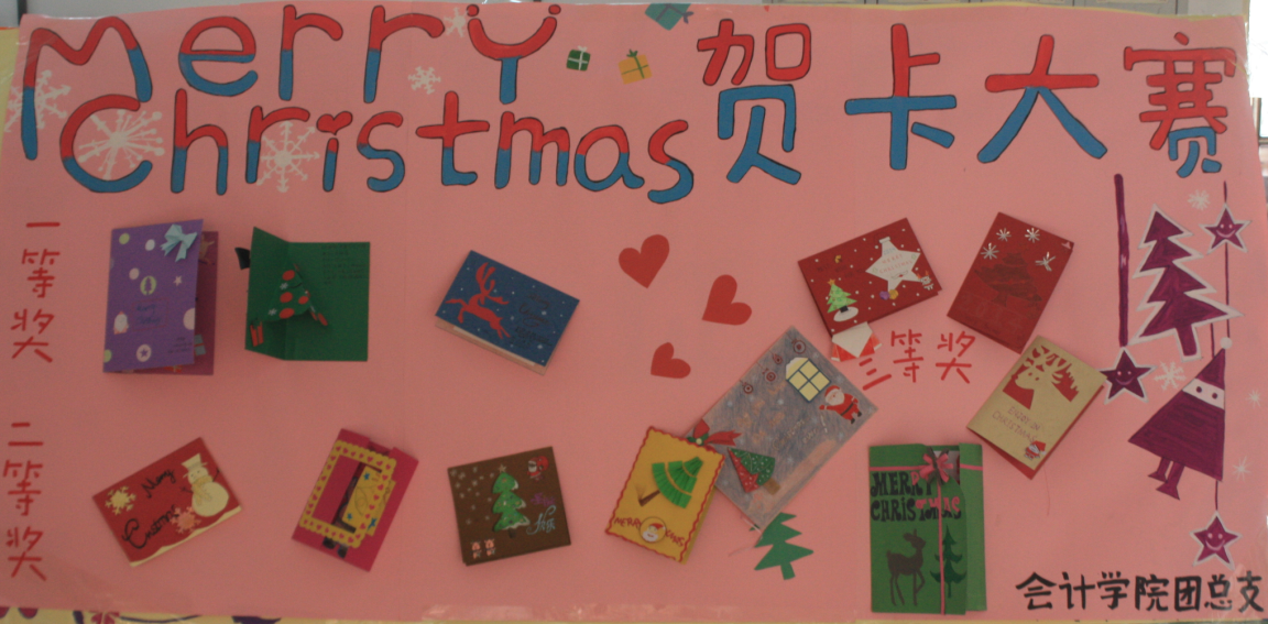 为提高同学们的创新意识和审美情趣,搭建展示学生动脑、动手能力的舞台,会计学院于2014年12月24日开展了 “圣诞祝福,平安你我”圣诞贺卡原创设计活动,以传递同学间、师生间的圣诞祝福。