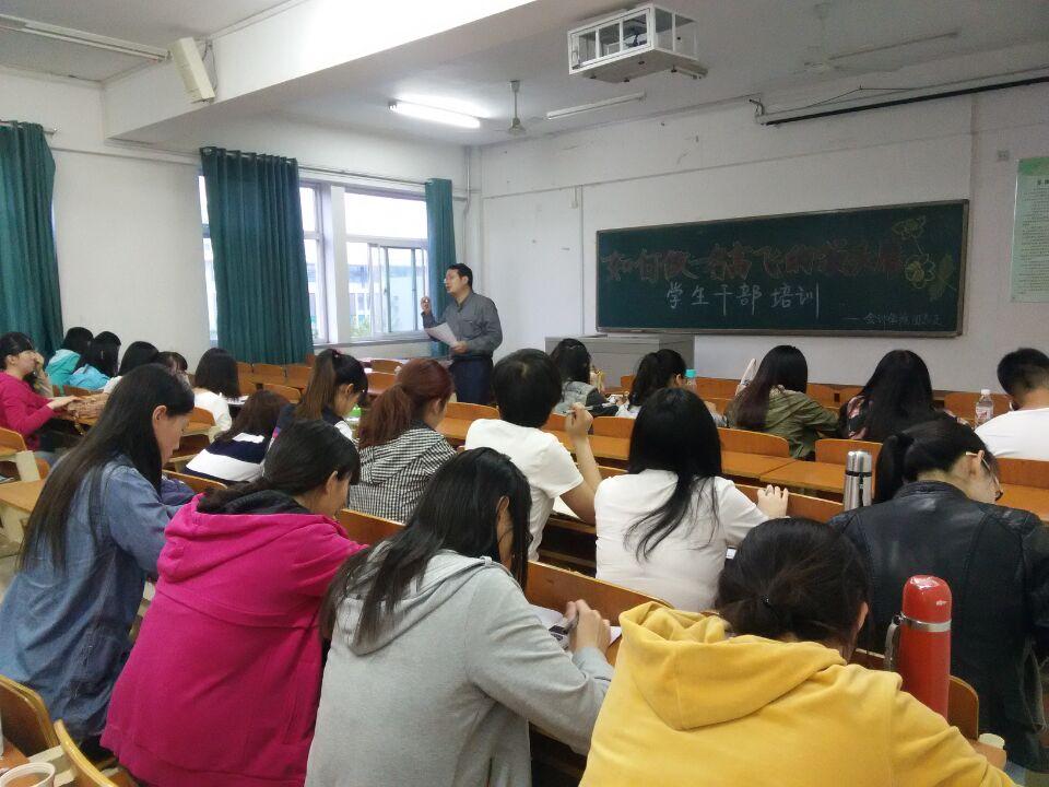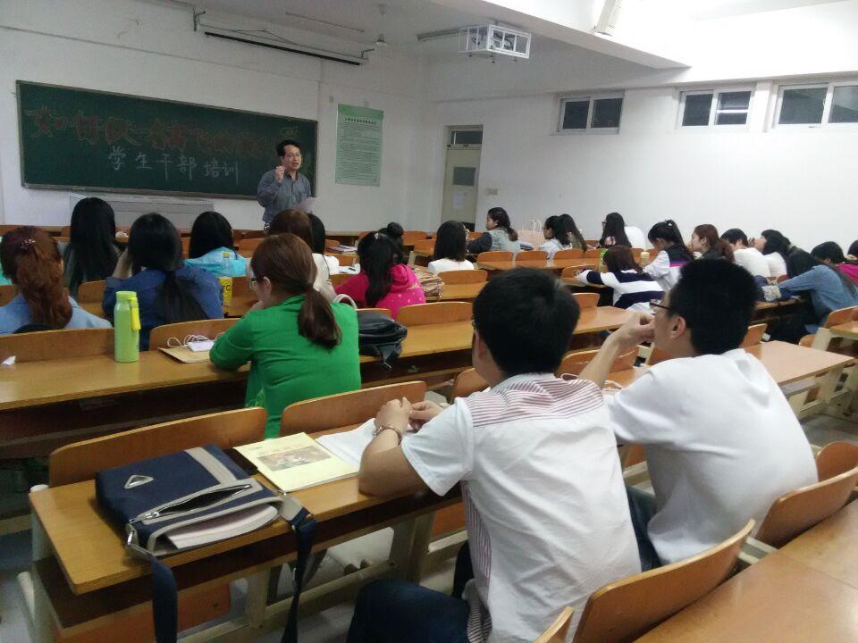 2015年5月9日晚在1号教学楼421教室,会计学院党总支负责人做了题为“如何做一名高飞的领头雁”的培训讲座,学院学生会、自律会共计43名学生干部参加此次活动。