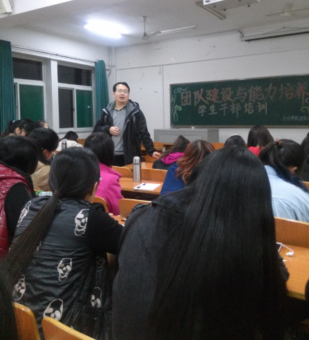 4月16日,会计学院在1号教学楼421教室教举办了“同路同行同成长”学生主要干部培训班开班仪式。学院党总支负责人作了题为“加强团队建设与大学生干部能力培养”的讲座。会计学院学生党员、各班班长、学生会与自律会主席和部长共计93名学生骨干参加此次培训。