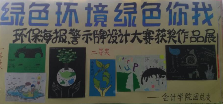 为增强大学生的环保意识,倡导校园低碳生活,激发学生维护校园良好环境的使命感和责任感,5月12日,会计学院开展以“绿色校园,你我共创”为主题的校园环保主题公益手绘海报设计作品展活动。