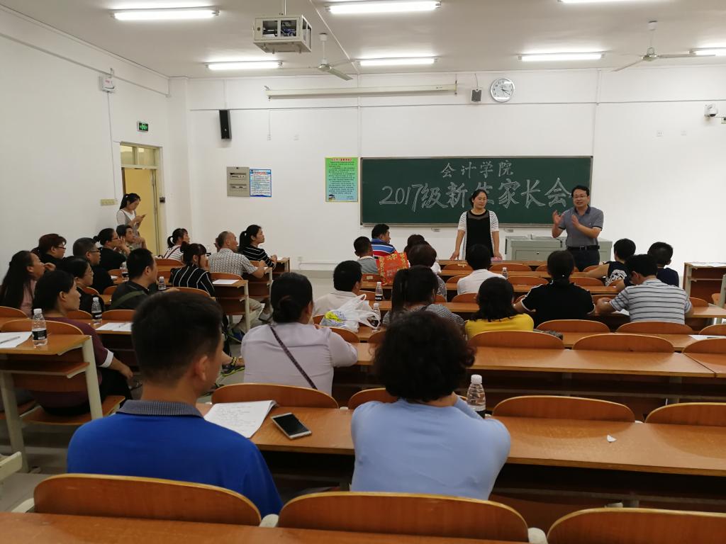 2017年9月16日下午,会计学院在博文楼102举办了2017级新生家长座谈会。会计学院党总支书记、分管学生工作的副书记及2017级新生辅导员出席了会议。