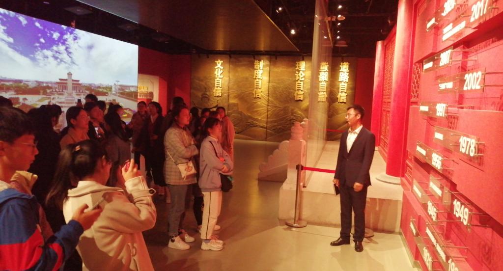 “青马班”学员在基地讲解员的带领下,通过现场讲解,情景体验,场景重现相结合的方式,在历史时光的闪回中,犹如置身其中,真切感受在不同时代、不同领域中国共产党人的初心和使命;真切感受在时代巨变、社会进步中中国共产党人的信念和担当。一位位鲜活的人物,一件件感人的事迹,引领着中国人一步步走进新时代的历史画卷,使学生干部更加明晰作为新时代青年为什么要担当、担当什么、怎样担当的问题。同学们纷纷表示,作为一名新时代大学生,要努力学好专业知识,立鸿鹄志,做奋斗者;而同时作为一名学生干部,要以党员的要求规范自身言行举止,在日常工作、学习、生活中做勇于担当的带头人。