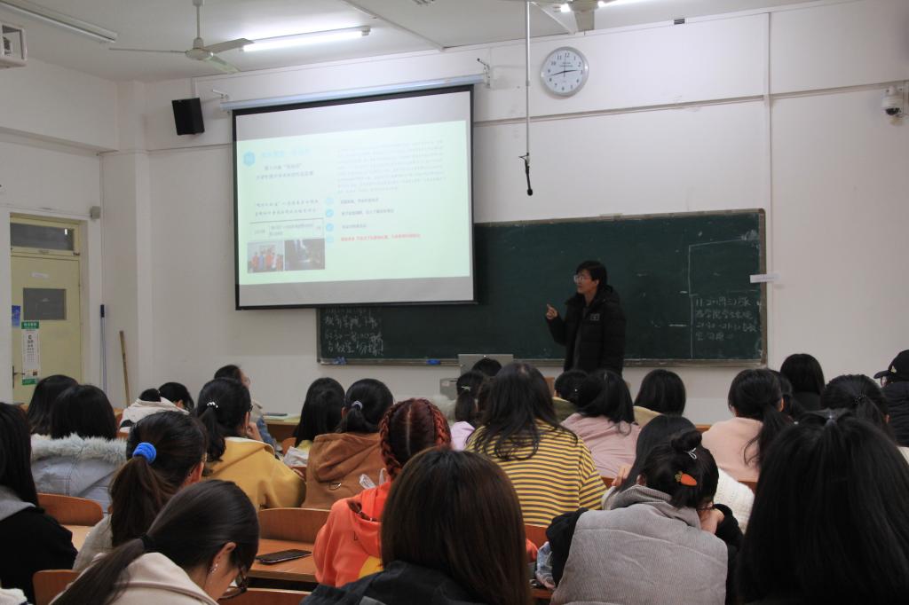 学习身边典型,感受榜样力量。会上,王晓萱从身为班长的角度,针对如何平衡好学习和工作之间的关系,与同学们进行了交流。并鼓励学弟学妹去发展兴趣、锻炼实践能力,同时叮嘱大家不要忘记学习依然是大学生活的重头戏。在场的学弟学妹们对王晓萱同学身兼数职却工作学习两不误表示敬佩。纷纷表示,身边有这么优秀的学姐做标杆,一定会努力拼搏,让自己的青春闪闪发光。