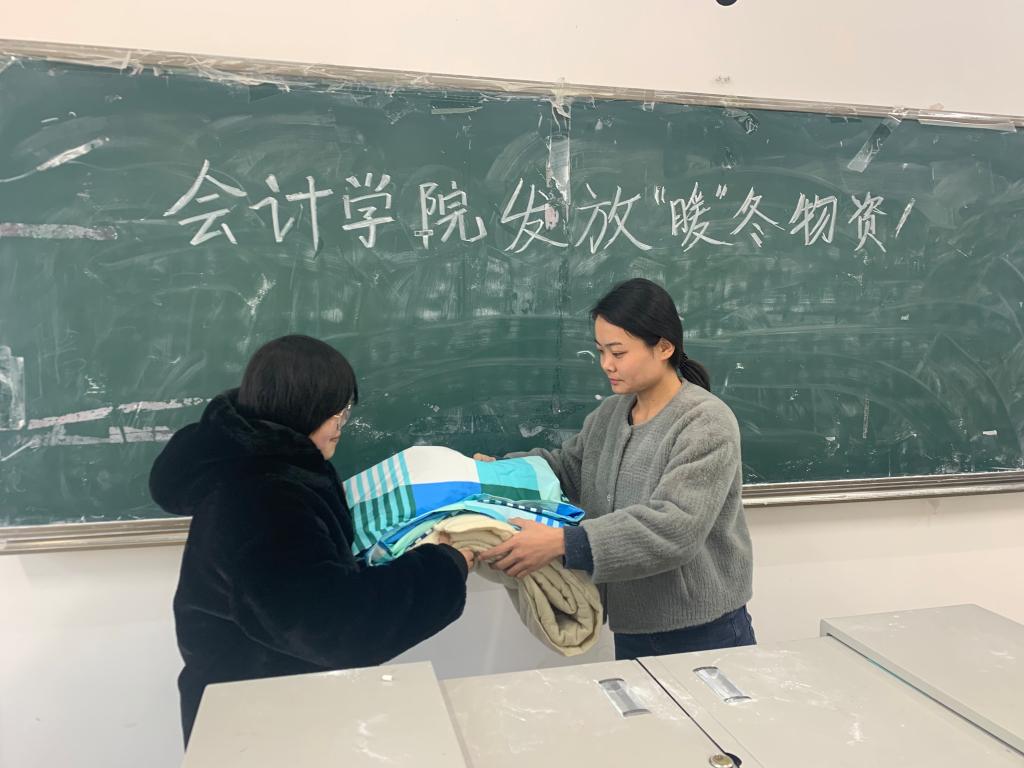 为确保家庭经济困难学生能够温暖渡过这个比以往更为寒冷的冬天,1月8日,会计学院为家庭经济困难学生发放被褥等过冬物资,让困难学生在这个寒冬感受到来自学院的温暖和关怀。