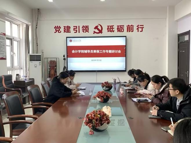 会上,学院党委书记尹衍梅传达了学校相关会议的精神和要求,就寒假工作进行了部署:一是安全工作不放松,精准掌握学生离校去向,追踪到人,假期安全提醒不断线;二是教育服务不放松,做好寒假期间学生心理健康、就业帮扶、访企拓岗、家访慰问、社会实践等工作,给学生提供暖心的关怀帮助;三是学习科研不放松,辅导员要以“转识成智、匠心育人”项目为依托,利用假期学习充电,进一步夯实理论功底。全体辅导员就寒假重点工作、2025年工作计划做了研讨交流,并结合各年级学生发展特点,讨论了寒假期间工作的具体安排。