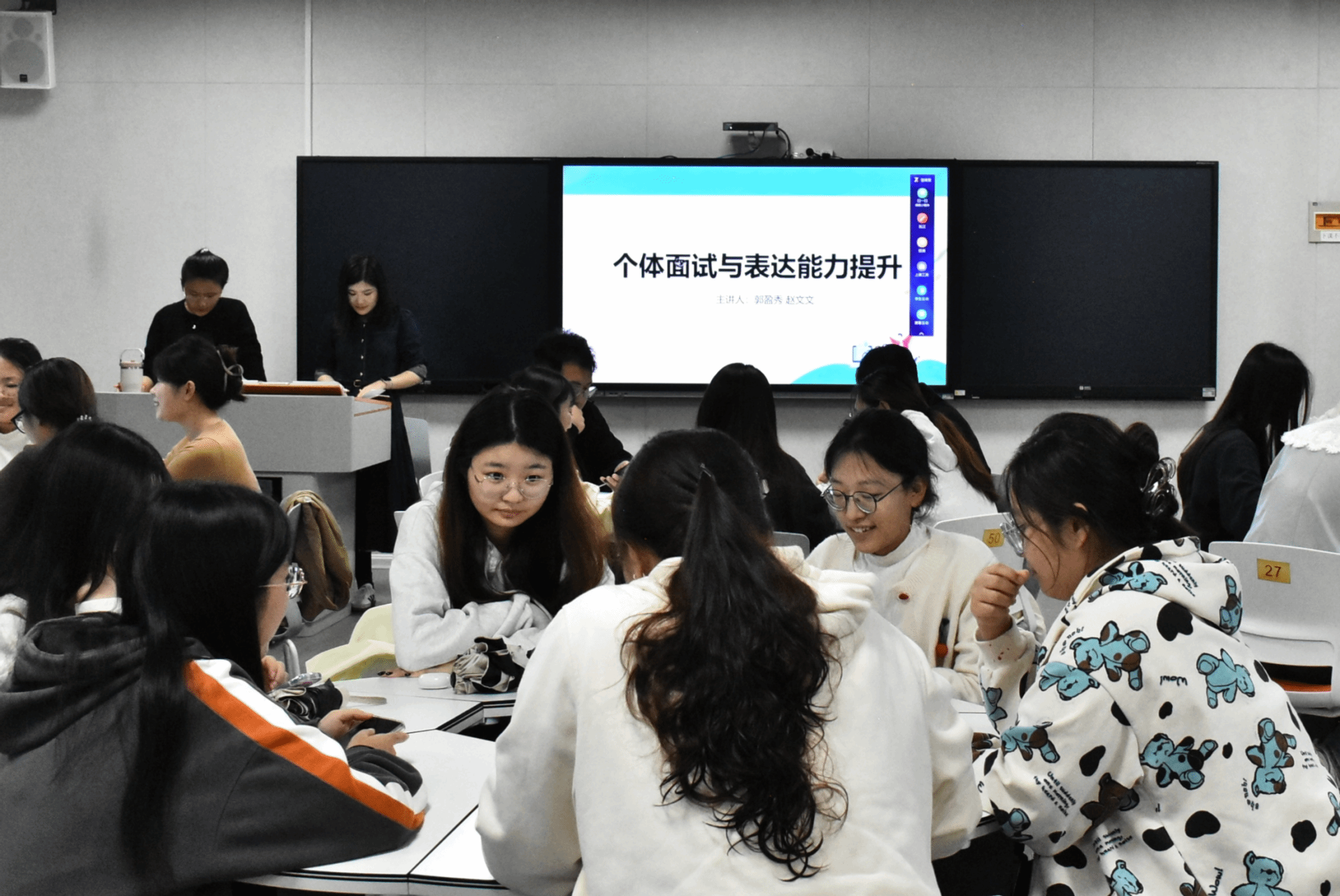 活动在轻松活泼的交流破冰环节中拉开序幕,迅速拉近了彼此距离。随后,现场进入了紧张而富有实效的“面试问题实战演练”与“小组讨论面试技能要点”环节。学生们在模拟中亲身体验面试场景,于小组讨论中碰撞思维、凝练共识。两名经验丰富的就业指导老师全程参与,结合学生们的现场表现,就如何精准理解面试官意图、逻辑清晰地组织语言、展现个人优势与岗位匹配度等核心技能进行了深入浅出的分享与指导,并为学生们答疑解惑。